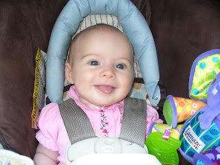 She is doing so well! She loves her hands. She loves to eat her hands. She loves to eat. She loves to spit. She loves to spit on Mom & Dad. She loves to copy everything we do. She loves to laugh at us when we make ridiculous faces and noises at her. She loves to play in her bouncy seat. She loves to grab her birds and monkeys on the bouncy seat. She loves music. She loves to be read to. She loves it outside. She loves to walk with her Mommy every afternoon. She loves to just be loved on. Such a good baby and now we want like twenty more of her. :)